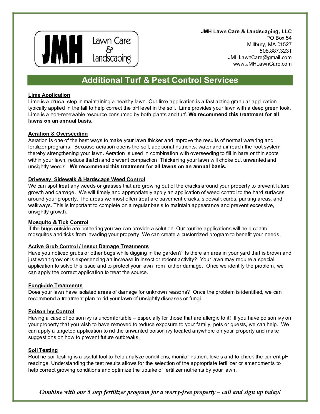 Recommended services to be used annually in conjunction with our five step fertilizer program: