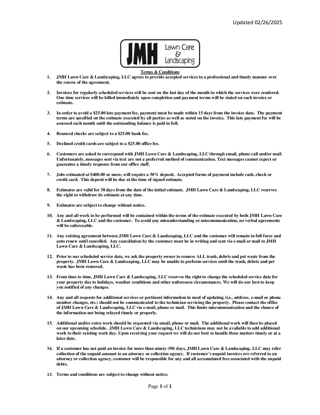 Please review our updated Terms and Conditions.